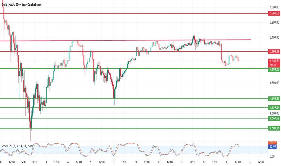 GOLD REKOR SONRASI DÜZELTME SÜRECİ DEVAM EDİYORBir önceki analizimizde fiyatın 4945$ direncini aşmasıyla hedef seviyenin 5100$ olduğunu belirtmiştim. Çarşamba günü bu hedef tamamlandı ve fiyat bu seviyeden satış yedi.