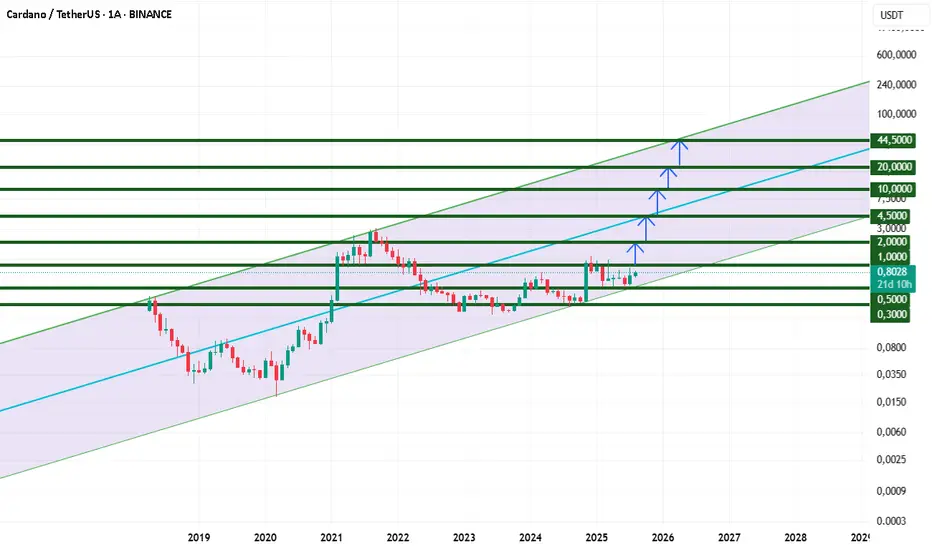 ADA coın logaritmik grafik alım için mantıklı seviylerde olduğunu gösteriyor. 44 -44.5 bandı boğa max hedefi ..