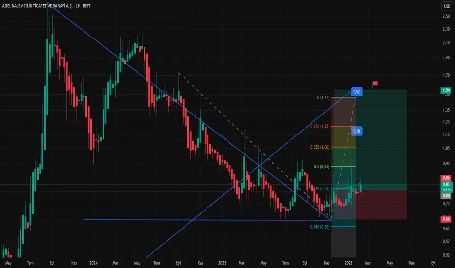 24 Kasım tarihinde 34TL fiyat bandından takibe aldığımız ADEL hissesi an itibari ile 38TL fiyat bandından işlem görmeye devam etmektedir. Teknik görünüm halen pozitif geçen iki ay zaman zarfında hisse başına net olarak 4TL kazandıran ADEL hissesinde yüzdesel fark %18 üzeri gerçekleşmiştir. Fiyat performans açısından gayet olumlu ve istikrarlı görünen ADEL formasyon hedefine kademeli olarak ilerlemeye devam ediyor.