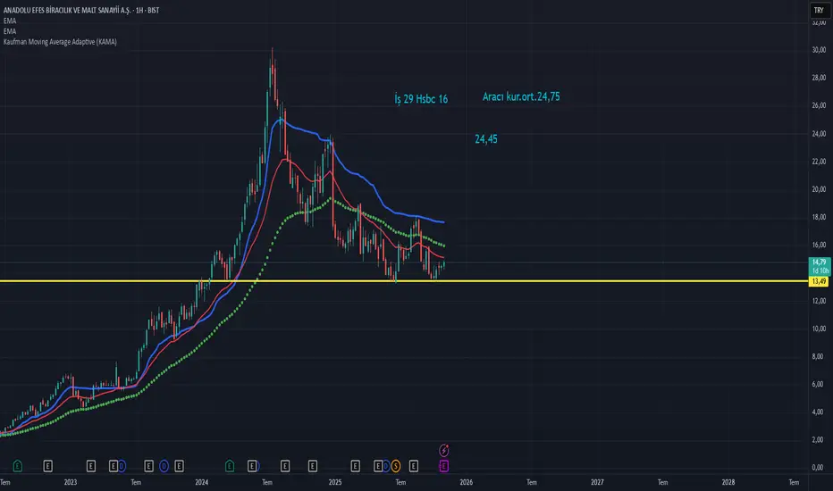 9 Aylık bilanço geldi eder fiyat 24.45.Aracı kurumların ort.hedef fiyatı 24.75.Teknik anlam da kırmızı 22 ema nın yeşil 50 ema üzeri kapanışlar yapmasını arayalım.Sarı çizgi destek çizgimiz.Olabilecek yükselişlerde kaufman indikatöründen tepki satışı gelebilir.
