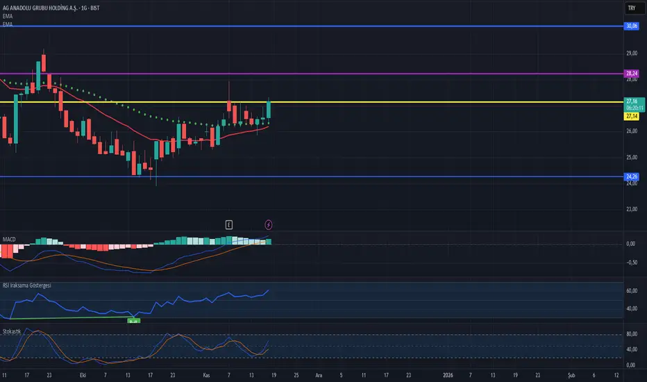 Grafikte fincan kulp formasyonu olmakla beraber sarı çizgi üzeri kapanışlar arayalım.İlk hedef çıkışın fibo 1.414 denk gelen 28,24 bu seviyenin üzerinde kapanışlar görmemiz durumunda ana hedef 30,06.