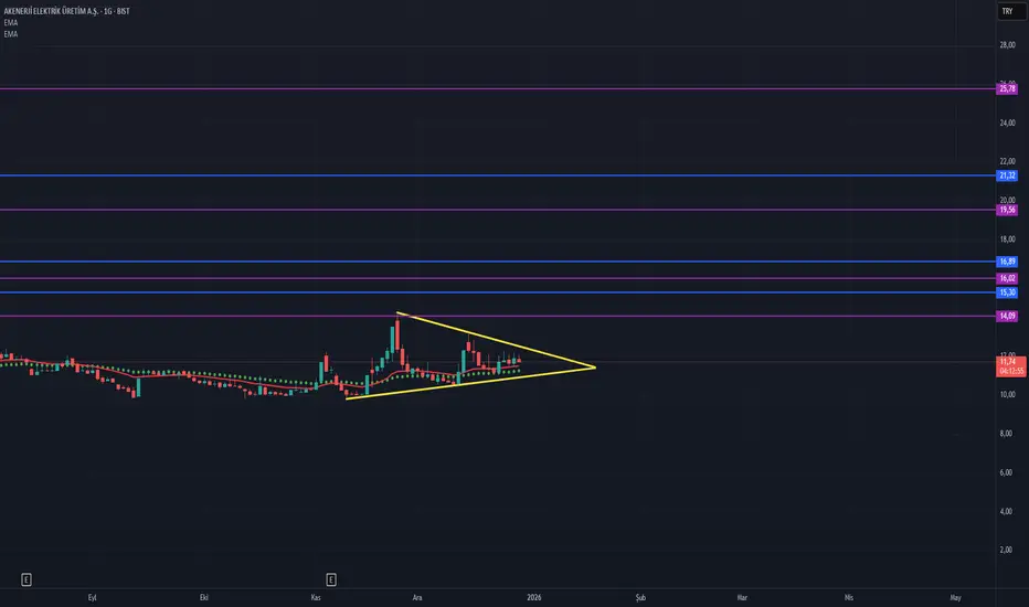 Grafikte Üçgen formasyonu olmakla beraber hedefler fibonacciye göre çizilmiştir.Formasyon şartı olarak sarı çizgi üzeri kapanışlar arayalım.