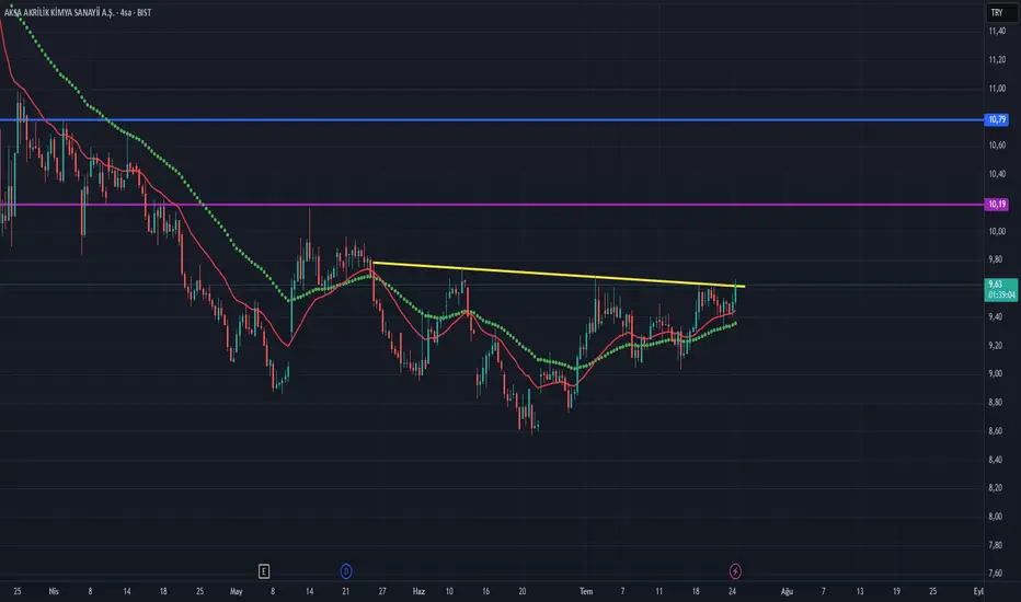 Sarı çizgi üzeri kapanışlar görebilirsek ilk hedef çıkışın fibo 1.414 denk gelen 10.19 ana hedef 10.79.