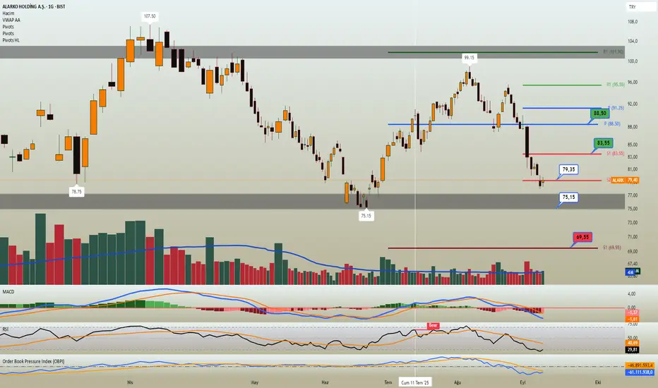 En kritik destek 75,15 (önceki dip) → kırılırsa alt destek 69,55.