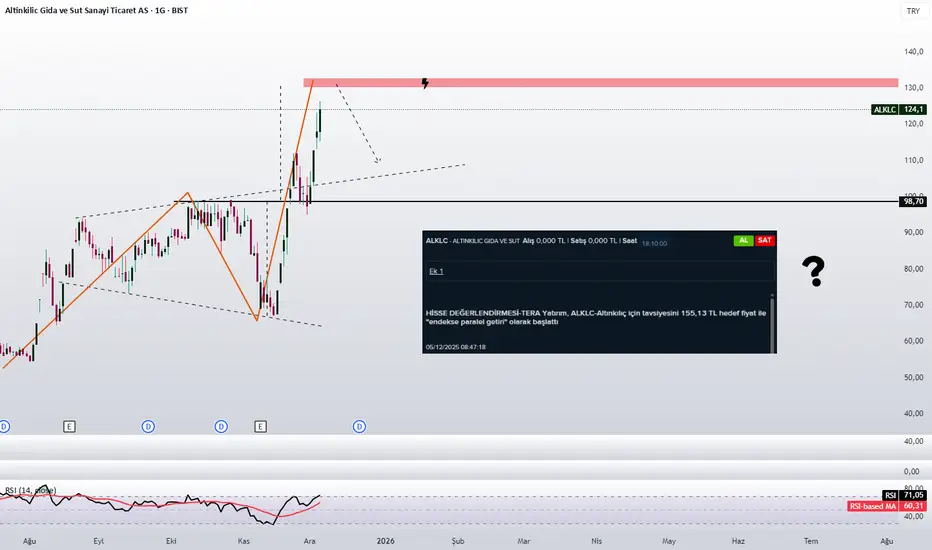 Kırmızı bölgenin geçilip geçilmeme durumuna göre hareket edilmeli ve ciddi yükseliş sağlamış bir hisse ile ilgili neredeyse zirve seviyelerdeyken yukarı yönlü hedef fiyat verilmesine soru işareti ile bakılmalı kanaatindeyim.