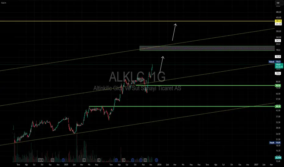 #ALKLC bir süredir yatay–toparlanma eğilimindeydi ve kritik seviyelerin üzerinde gelen kapanışlarla birlikte teknik görünüm güçlenmişti. Daha önce incelediğimiz çalışmada 56,85 üzeri kapanışlarda 70,95 → 80,15 → 85 TL hedeflerini vermiştik ve fiyat bu bölgelerin çoğuna ulaşarak teknik anlamda hedefleri tamamladı.