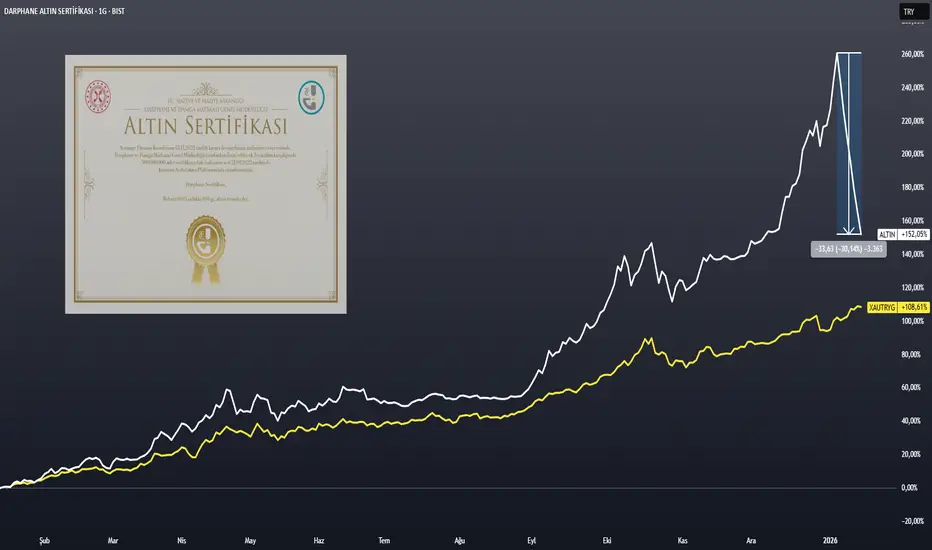 AltınS1 premiumu son 1 yılda %260’ı aşmıştı. Aynı dönemde fiziki altın (TL bazlı) yaklaşık %108 yükseldi. Bu kadar açılan bir makasın kalıcı olması zaten mümkün değildi; denge kaçınılmazdı.