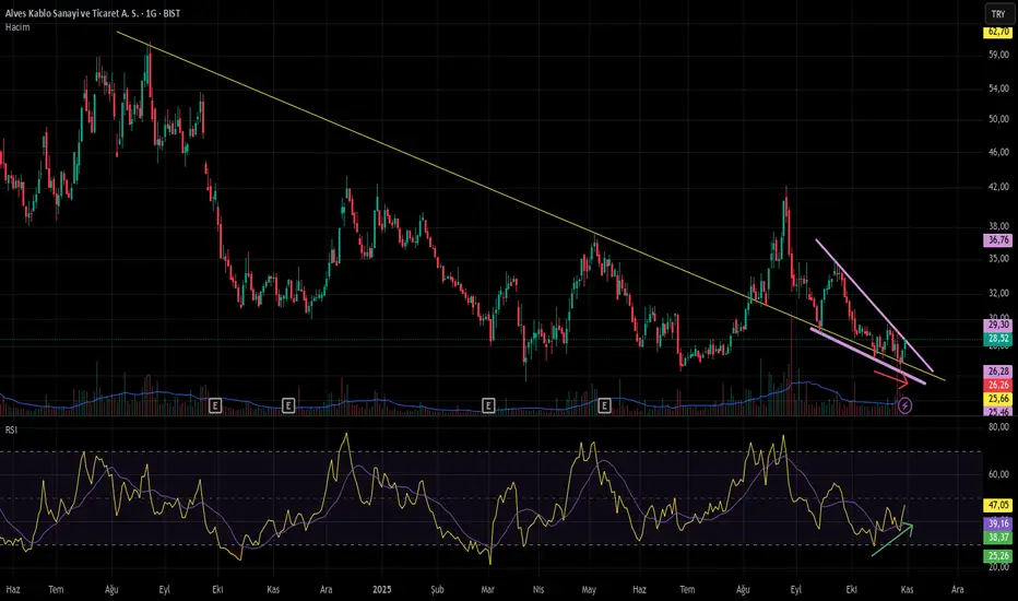 26 civarlarında dip oluşumu tamamlanmış görünüyor. Henüz dipten uzaklığı %15 civarlarında. İlk hedefi 36-38 civarları. Bu rakamların üzerinde yeni bir çıkış trendi başlar.