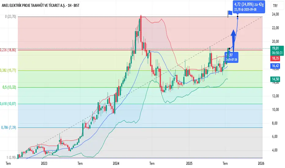 18 Temmuz da 14TL den paylaştığımız ANELE Hissesi an itibari ile 18,86 TL ile tavana doğru hareket ediyor. Paylaşım tarihinin üzerinden bir hafta geçmeden ilk tavanını yapan ANELE için bir uyanış olarak görüyorum. Zaten hisseyi orta ve uzun vade için önermiştim.FİBO 0,236 seviyesini rahatlıkla test edeceğini öngörüyorum. Orta ve uzun vadeli yatırımcılar için şimdiden hayırlı olsun diyor önümüzdeki günlerde daha keyifli günlerin beklediğini belirtmek istiyorum.