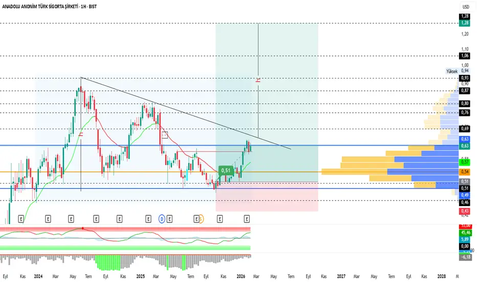 0,51 $ maliyetle 2025 son çeyrekten beri elimde tuttuğum hisselerden birisi de ANSGR. Öncelikle Kurumu ilk incelediğimde takasın Yatırım fonlarında toplu olduğunu, orta güzel bilançolar gelmesine ramen fiyatın hareket etmediğini belirledim. 25 Aralık 2023 tarihindeki dipten yatay sabit hacime bakıldığında görünen manzara fiyatın sıkıştığı alanı net göstermektedir.