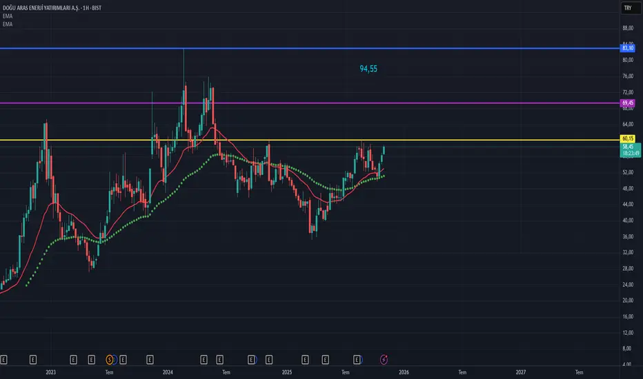 9 Aylık bilanço geldi eder fiyat 94,55.Teknik anlam da fiyatlar 22 ema nın 50 ema üzerinde olduğu sürece yön yukarı.Başka bir bakış açısıyla Tobo formasyonu olmakla beraber sarı çizgi üzeri kapanışlar arayalım.İlk hedef çıkışın fibo 1.414 denk gelen 69,45.69,45 üzeri kapanışlar da ana hedef noktamız 83,10.