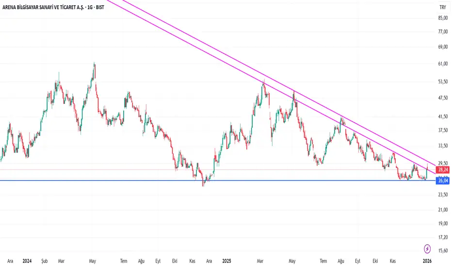 ARENA yataydaki belirtilen destekten sekmeye devam ediyor. Düşen ikinci trendi de kırarsa yükselişine devam edebilir.