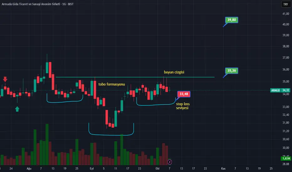 #armgd tobo formasyon çalışması mevcut stoploss seviyesi 33,48 seviyesi boyun cizgisi kırıldıgında formasyon hedefini okur yatırım tavsiye degil.