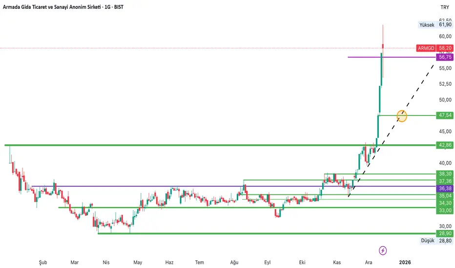 Ana hatlarıyla ben seviyeleri yazayım, 56.75 üzeri pozitif devam eder. Bu ay kapanış seviyesi ise 47.54 üzeri olursa bu da pozitif yazar.
