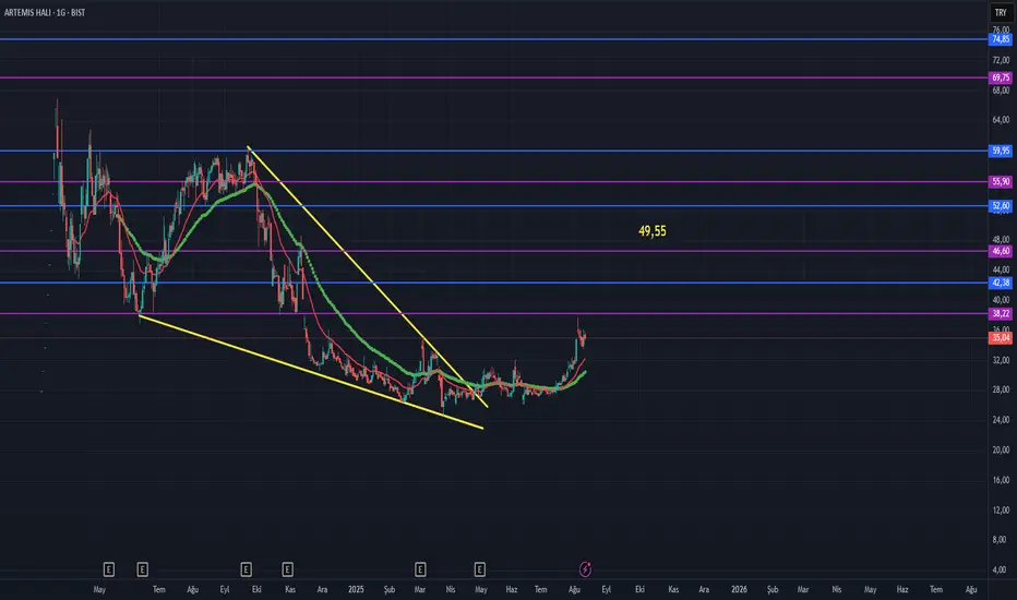 6 Aylık bilanço geldi eder fiyat 49,55.Teknik anlamda fiyatlar 22 ve 50 ema nın üzerinde old.sürece yön yukarı.(Bahsettiğim hareketli ort.izsüren kabul edebiliriz.) Hedefler fibonacciye göre çizilmiştir.
