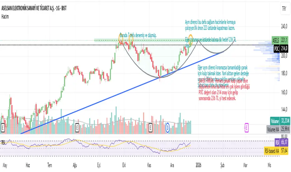 ŞAHSİ FİKRİM: Herkes çanak kulp yapar diye düşünecek ama bu hisse en çok işlem gördüğü POC değeri olan 214 TL onay için gelip sonrasında 236 TL yi hızlı test edebilir. YTD