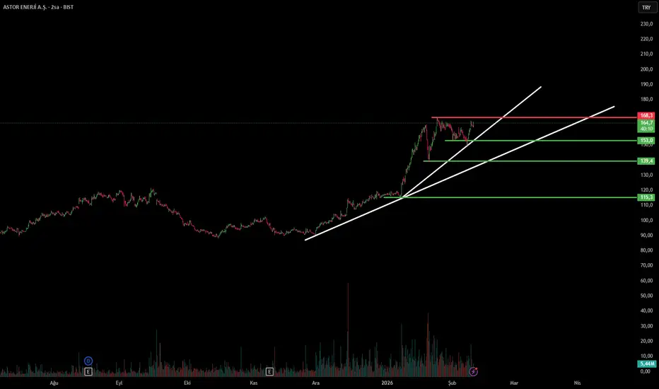 ASTOR hissesi, iki ayrı yükseliş trendi tarafından desteklenmesi nedeniyle net bir şekilde pozitif görünümünü koruyor. Olası geri çekilmelerde bu trendlerin güçlü destek oluşturması beklenirken, mevcut yapı korunursa hissenin 168 direnç seviyesini kırarak yukarı yönlü hareketini sürdürmesi mümkün görünüyor.