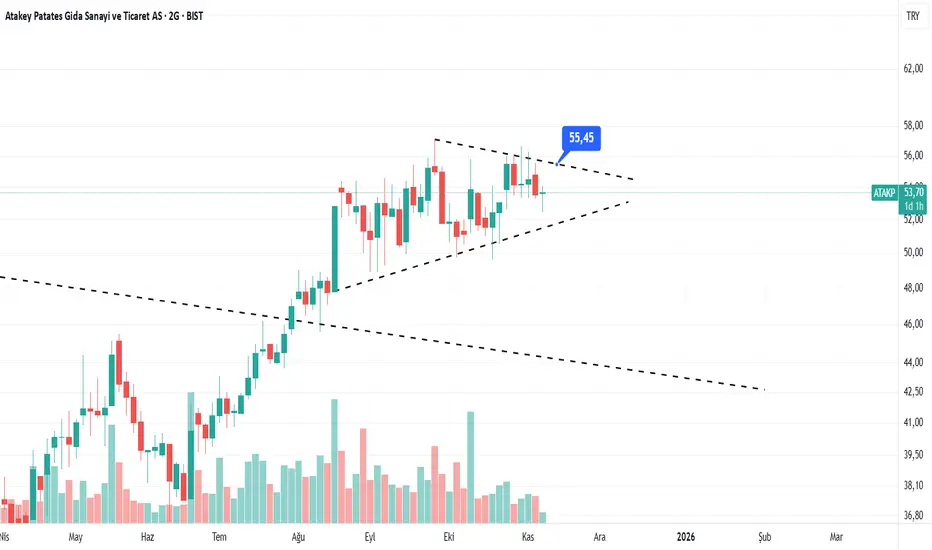 ATAKP Fiyat dar bır aralıkta ıslem gormeye devam edıyor 55,50 üstü kapanışlar onemli olacaktır