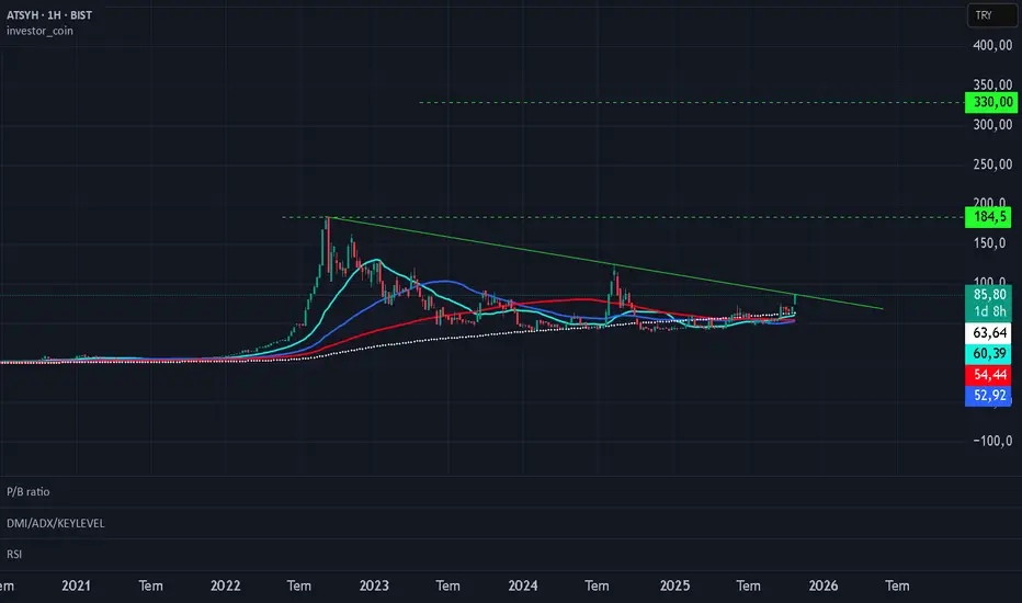 Atlas Yatırım Holding çok uzun süren düzeltmesini tamamlayarak, düşen trendin direncini kırmak üzere, haftalıkta da 200EMA üstüne atmış, çok sert hareketler sergilemeye hazır görünüyor. İlk hedef çanak tepesi 184, sonraki hedef 330 gibi beklentim var. Yatırım tavsiyesi değildir. Al, sat, tut v.s içermez.