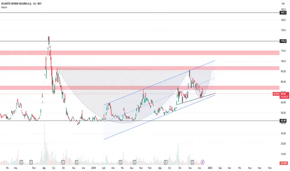 Düşen trende son vererek bir süredir yükselen kanal trendi oluşturdu. Bu kanalda herhangi bir bozulma olmadan fincan kulp oluşumu da devam ediyor. Buna göre 1 aylık süreçte ilk hedef 119, devamında 90-100 civarı düzeltme ve 2 aylık süreçte ikinci hedefi 150 civarı olmasını bekliyorum.