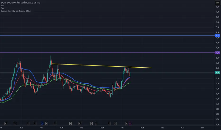 Formasyon şartı olarak sarı çizgi üzeri kapanışlar arayalım.İlk hedef noktası fibo 1,414 seviyesi olan 52,30 ana hedef 65,70.