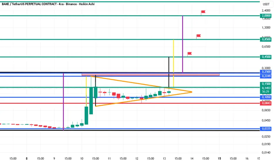 0.1050 altında NEGATİF olacak olan BAKE eğer 0.22-0.25 bölgesini başarıyla geçip üzerinde günlük kapanışlar yaparsa hedefler ;
