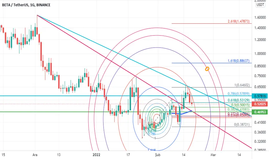 Mavi kısa çizgi 4 saatlik görünümde ma-200 hareketli ortalamasını temsil etmekte. Kırmızı düşen trendin de re-testi henüz yapılmamış ve trend temelli fib 0.382 dönüş seviyesi de aynı zamanda oradan geçmekte. Eğer alıcılar orada bekliyorsa fiyat güzel bir tepki verebilir. Hâlâ son bir hareketi kalmış olabilir. 25 şubat tarihine kadar yükselişe devam ederse eğer Turuncu işaretlediğim bölge yakınlarına kadar yükseliş gelmesi olasıdır. Sert yükselirse de o civarlara kadar yükselir. Oraların iyi bir satış yeri olacağını düşünmekteyim, 0.70-80 arası oluyor ya da stop koyup izlersiniz size kalmış. Günlük grafik olduğu için alım yapmakta çok acele etmeyin ya da kademeli alım yapın size kalmış ama ne olursa olsun fib 0.272 seviyesinin altında gelecek gün kapanışına stop gözüyle bakmaktayım bu da %5-7(alım yerinize göre artar düşer) bir zarar riskine tekabül etmekte. Risk eşiği elbette yüksektir hele ki böyle bir dönemde. O yüzden paranızın ne kadarını riske atabileceğinizi düşünerek al-satlara girmeniz daha mantıklıdır üzülmenizi istemem. Bol kazançlar.