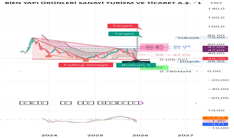 Haftalık da düşen kama ve ikili dip yüzler güler hedef 70 ler