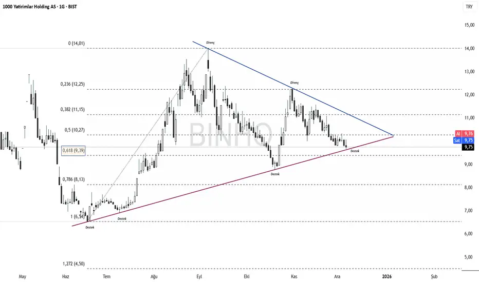 -Hisse simetrik üçgenin yükselen trendine yaklaştı 9,64 seviyesi