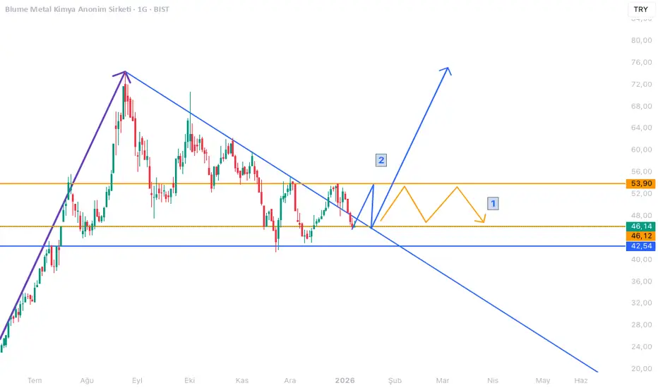 1- 46 TL - 54 TL arasında gel - git fiyat hareketi
