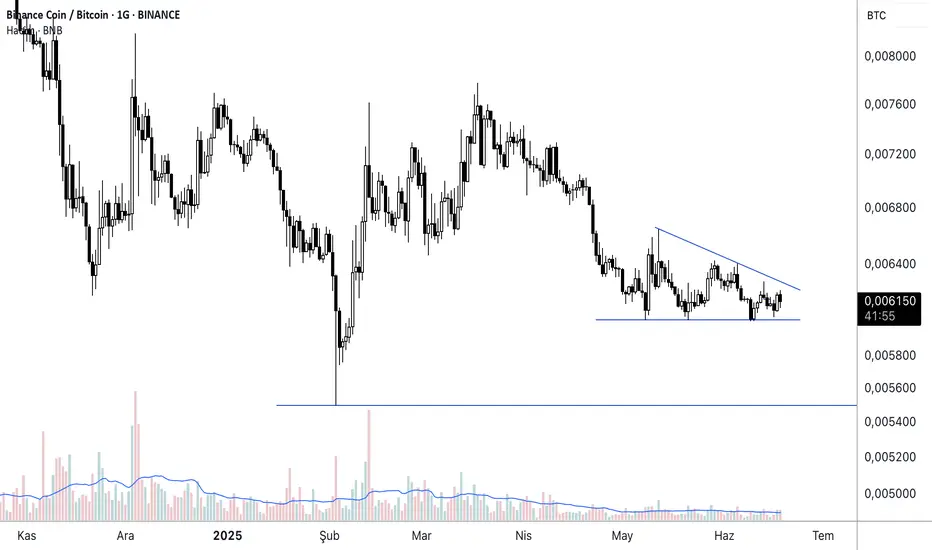 bnbbtc uzerinde alcalan ucgen formasyonu gozleniyor suan icin alt destek kisminda 3 temas var ve 4. biraz yukarida kalmis ama formasyon gayet guzel gozukuyor calisip calismadigini takip etmek icin paylasiyorum alt destek kirilmadan formasyonu tamamlanmis olarak kabul etmeyin