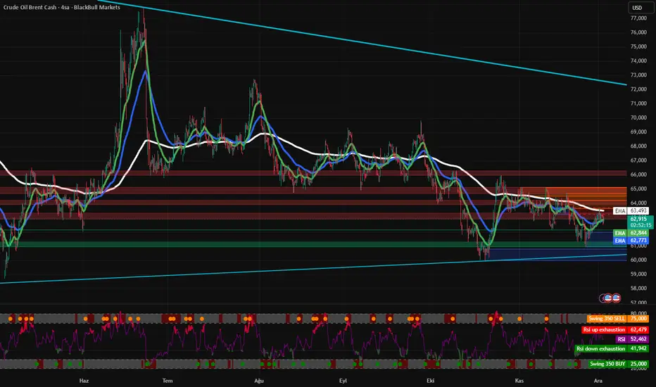 Brent 4 saatlik grafikte 66.460 üzerinde 4 saatlik kapanış gelmediği sürece alt bölge kanalımız olan 60.000 seviyelerini tekrardan test edebilir.