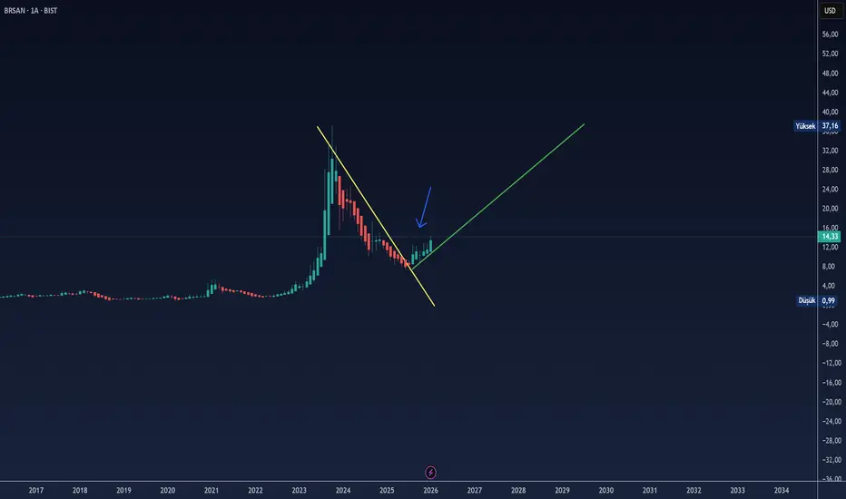 Dolar bazlı grafikte uzun vadeli düşüş trendi kırılımı gerçekleşmiştir... Fiyat yapısı fincan formasyonunu andırmakta olup, henüz kulp oluşumu görülmemektedir.