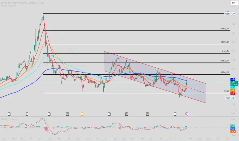 8,10₺ zirvesinden bu yana bir türlü istenilen yükseliş performansını gösteremeyen hisse 3,63₺ seviyesini ördükten sonra tepki yükselişini 5,70₺'ye kadar sürdürmüştü, o tarihten bu yana tam yedi aydır düşüş trendinde olan fiyat son dönemki performansı ile trend kırılımı sinyalleri veriyor.