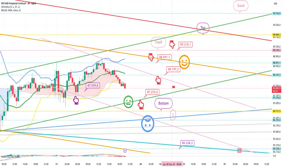 stratejiyi dünkü uzun pozisyon giriş noktası olan 87.5K'ya bağladım.