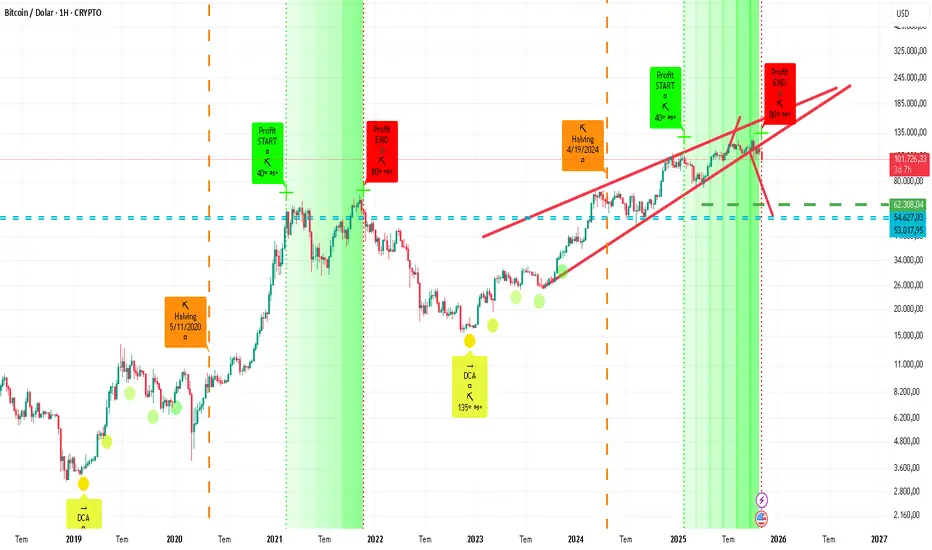 15.000 usd de alım sinyali veren indikatorumuz 27 Ekim tarihinden itibaren profit end sinyali vermiştir.İndikatöre dikkatli bakıldığında bu sinyal her geldiğinde btc ayı sezonuna girmiş ve ciddi düşüşler olmuştur.Aynı zamanda haftalıkta Yükselen kama da aşağı kırılmış ve hafta kapatmaya başlamıştır. Bu durum düşüşü desteklemektedir.İşlemlerinizde stopsuz ilerlememenizi ciddiyetle öneririm.İlgili grafik tamamen hayal ürünü olup kesinlikle yatırım tavsiyesi değildir.