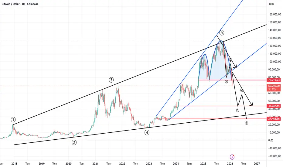 Son 5. dalga da genişleme formasyonu içinde tepede oluşan ters çanak- kulp formasyonu kırıldı, günlük ve haftalık kapanışlar düşüşü onaylar. 2013 yılından başlayan uzun vadeli bir çıkışın bütüncül bir düzeltmesi olması muhtemel ve böyle bir olasılıkta düzeltme beklenenden büyük olabilir.