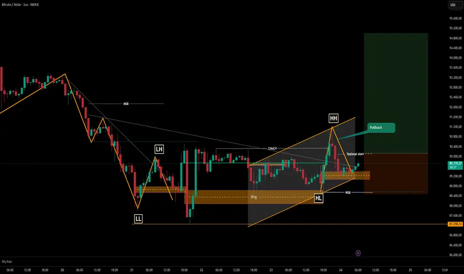 Invalidation: Eğer satıcı baskısı artarsa, 88.800 seviyesi MSB (Market Structure Break) bölgesi olarak son kaledir. Bu seviyenin altı yapıyı bozar, ancak korunduğu sürece yön yukarıdır.