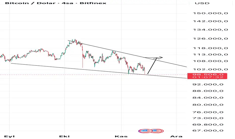Bitcoin bir süredir alçalan bir kanal yapısı içerisinde hareket ediyor. Fiyat 98.000 bölgesinden tekrar alt banda temas etti ve bu bölge, hem yapısal destek hem de önceki tepkilerin geldiği alan olması nedeniyle kısa vadeli bir tepki yükselişini destekliyor.