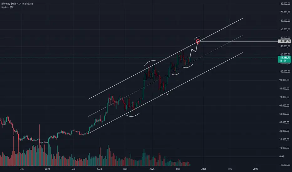 Kanalın üst bandı 135.000 – 150.000$ aralığını işaret ediyor. Kasım ayı civarında (2025 sonuna doğru) bu bölgenin hedeflenebileceği tahmin ediyorum.