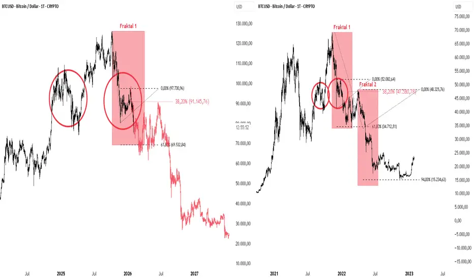 BTC hat sich für den schnellen Weg entschieden, da noch ein längerer Korrekturpfad vor ihm liegt. Dadurch wird auch die zeitliche Einordnung klarer, warum die Bewegung bereits in Q1 so stark beschleunigt. Aktuell befinden wir uns erst im Fraktal 1 einer weiteren Korrektur. Damit bestätigt sich das Worst Case Szenario immer mehr...