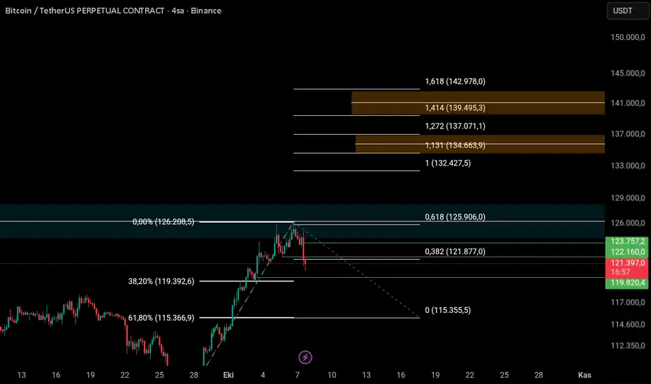 4hdekı 126000 zirvesinden sonra rs uyumsuzluğu ılede desteklenen düzeltme hareketinin fibonacci seviyelerine göre beklentileri İlk hedef 130000 dolar üstü