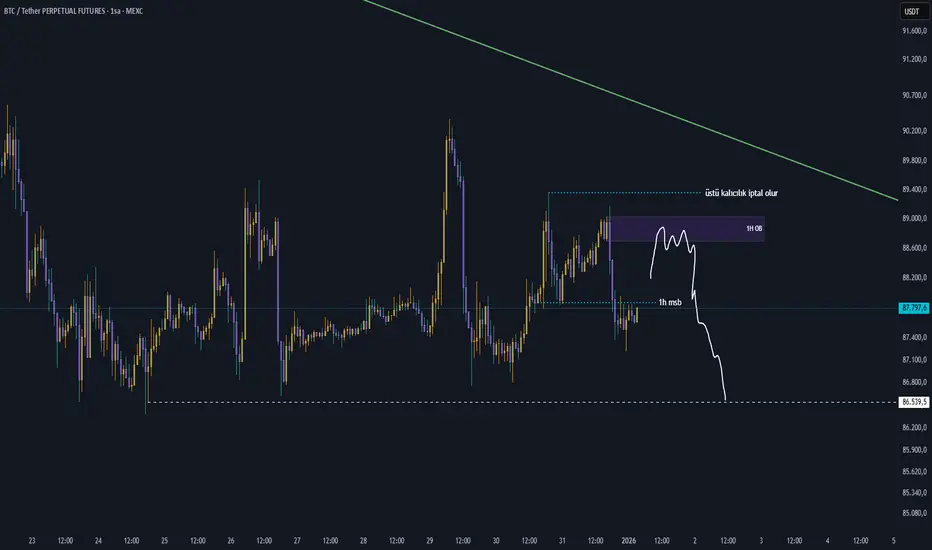 Fiyat 1h msb yaptıran emir bloğunu geçemez ise alttaki açık likiditeyi hedeflemek isteyebilir.