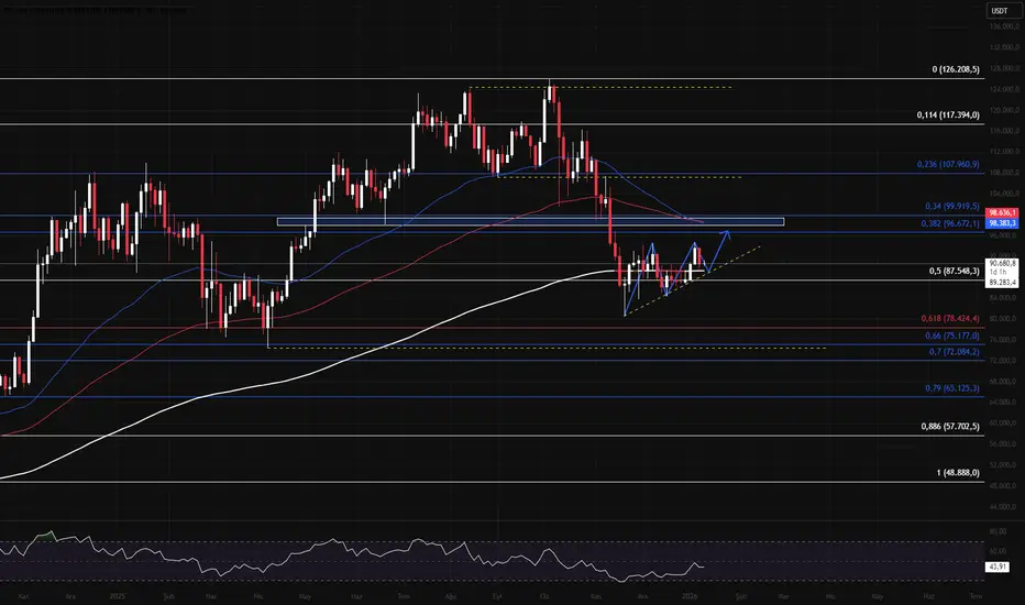 Bitcoin tarafında 3 günlük bazda ema 200 değeri önemli bir destek seviyesi olarak gözüküyor... buradan gelen bir tepki ile 96k bandını hedefleyebilir... 3 günlük bazda ema 200 aynı zamanda haftalık mumun likitidesinin alınma seviyesi..
