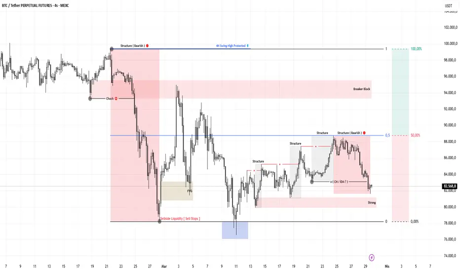 🔴 99.400 ' den 78.200 sert bir şekilde düşen btc düzeltmesini yaparak BB kadar bir düzeltme gerçekleştirdi ve tekrardan yeni bir low yaptı.