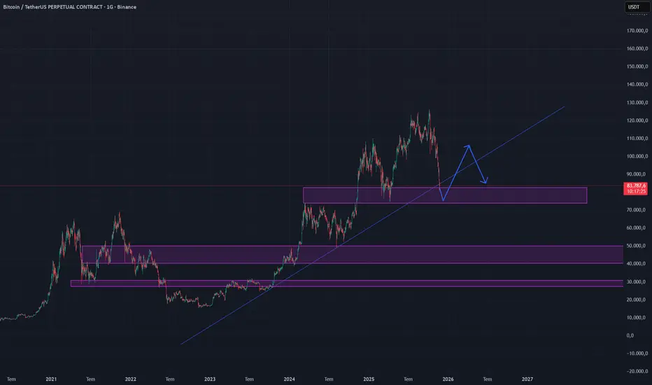 1 önceki paylaştığım fikirde de belirttiğim fiyata geliyoruz. Oradan çok çok çok yüksek ihtimal tepki almasını bekliyorum. Uzun vade BTC alımı yapmayı düşünen varsa bütçeniziniz %15-%20'Lik kısmıyla alım yapmayı düşünebilirsiniz.