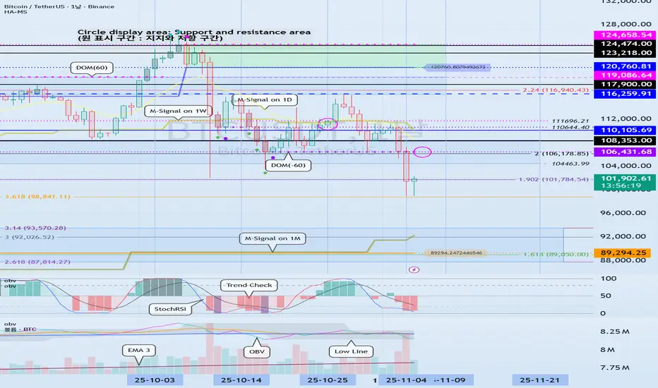 이번 하락으로 인해 1M 차트의 HA-High 지표가 110105.69 지점에 생성되려는 모습을 보이고 있습니다.