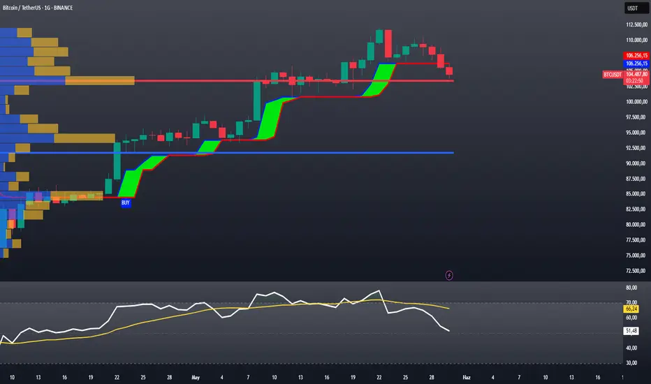 🔸 FRVP: Yoğun takas bölgesi 103.500, bu seviyenin altında kapanışlar satış baskısını artırabilir