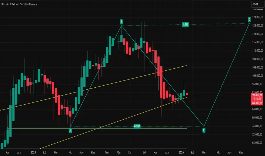An itibari ile 88.888$ seviyelerinde seyreden BTC (bitcoin) için haftalık satış baskısının devam ettiğini ve kar satışlarının devam ettiğini görüyoruz. Hacimdeki düşüş satış baskısının artabileceğini gayet gözler önüne seriyor teknik olarak incelediğimizde para çıkışı ile birlikte 88.888$ bandında seyreden bitcoin için 80.000$ ana destek seviyesinin devam ettiğini bu seviyelere kadar çekilmelerin gerçekleşe bileceğini ancak aylık grafiğe baktığımızda BTC için her ne kadar 77.777$ seviyeleri ana destek altındaki KÖK destek olarak belirleye biliriz. BTC için kademeli düşüşlerin devam edeceği yukarı doğru fake hareketlerin gerçeği yansıtmayacağını ay sonuna kadar düzeltmenin tamamlanacağı kanaatindeyim. Sıralı olarak belirttiğim destek ve ana destek seviyeleri takip edile bilinir.