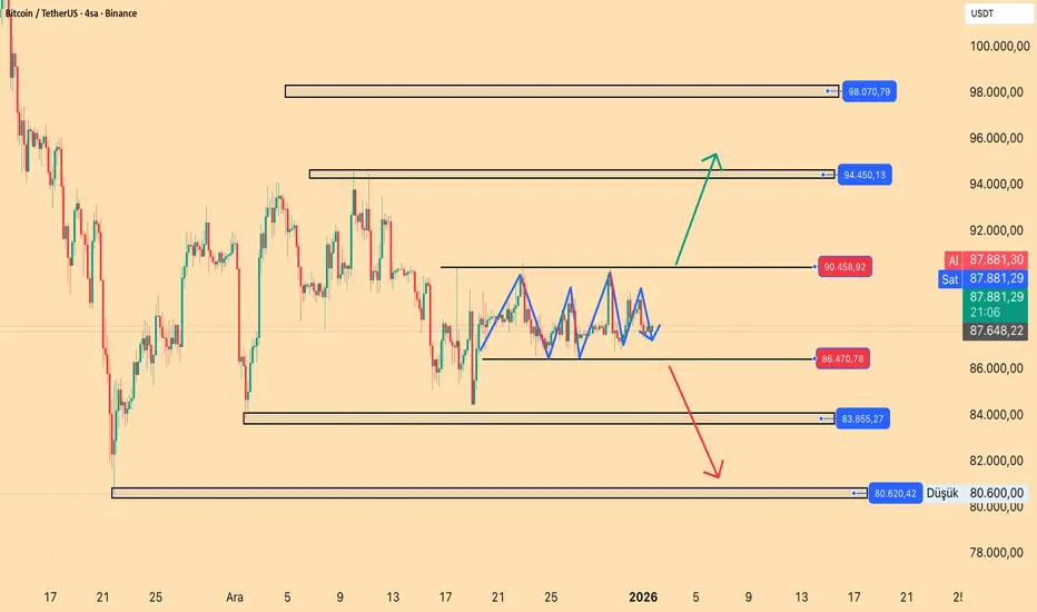 Öte yandan, 86.600 doların altına bir kırılma bu aralığı kırar ve 83.900 ve 81.000 doları hedefleyerek daha fazla düşüşü tetikleyebilir.